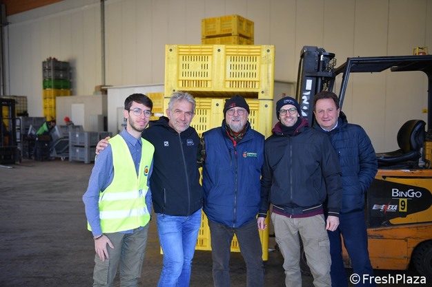 También forman parte del equipo Enrico Montaguti, un joven y brillante director de marketing y comunicación (el primero por la izquierda), Gianni Ghirelli (experto en poscosecha) y Enrico Strocchi (director de planta).