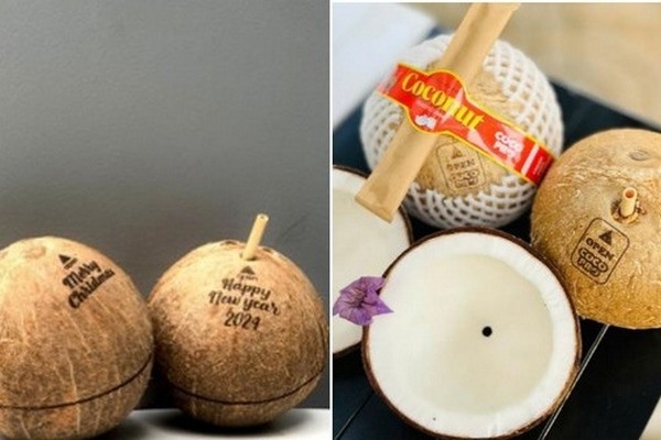 "Los cocos vietnamitas son de tamaño mediano a grande, pesan al menos 750 gramos cada uno, tienen un color marrón claro y una cáscara exterior rugosa. Suelen tener forma redonda u ovalada, con tres ojos visibles en la parte superior. El color marrón claro y la forma ovalada también permiten al equipo de Coco Produce crear una variedad de diseños modernos y prácticos para estos cocos. Estos pueden personalizarse para incluir la marca de nuestro cliente", añade.