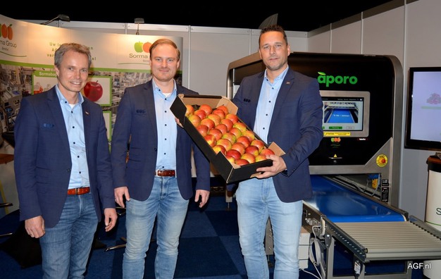 Recientemente, en la feria frutícola Fructura, organizada en Hasselt (Bélgica), Sorma Benelux presentó una de sus últimas soluciones de automatización para el envasado de frutas y hortalizas: el robot Aporo. Esta máquina coloca automáticamente la fruta (redonda) en la bandeja de las cajas; un proceso muy laborioso que la máquina permite automatizar.