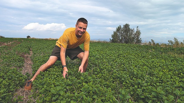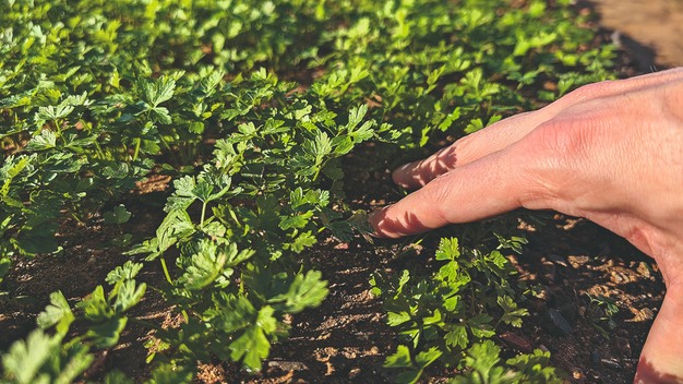 John Gijbels observa el cultivo de perejil en Tarragona.