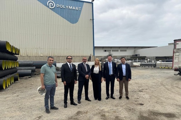 El equipo de ISAWIC frente a la fábrica de Polymart MMC en Bakú.