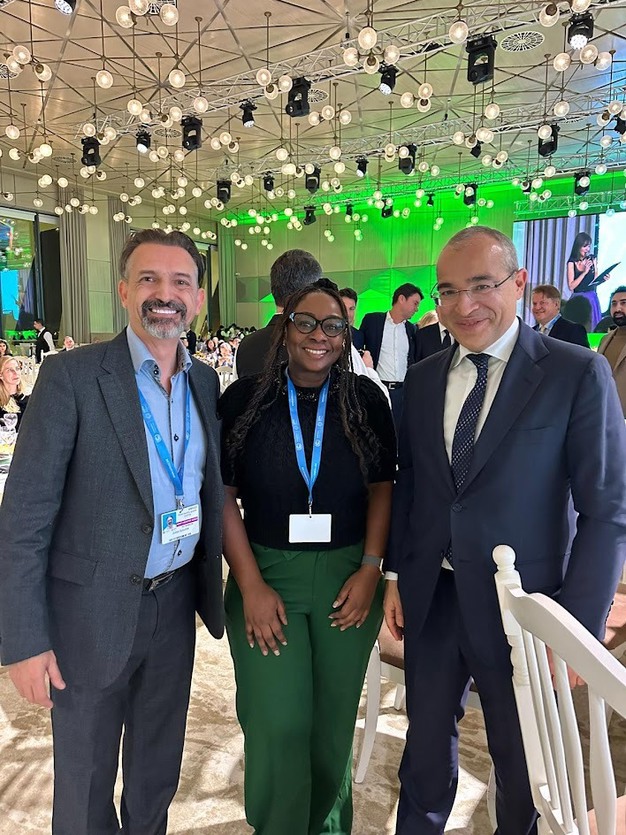 Derecha: Zoltan Sztuchlik y Jamel Nampija tras la reunión con Mikayil Jabbarov, ministro de Economía de Azerbaiyán, en la COP29.