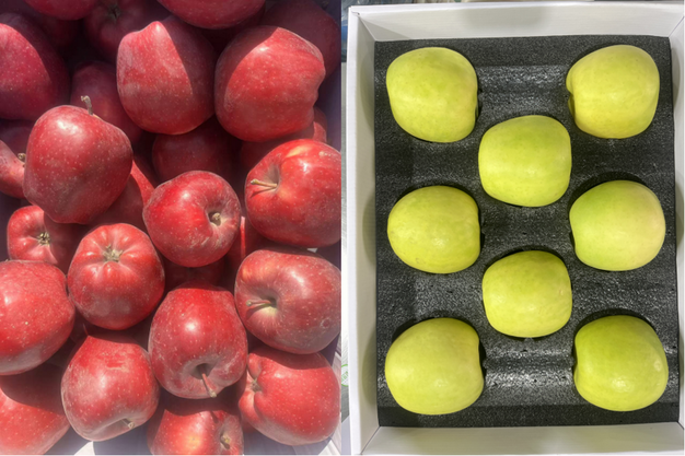 Izquierda: manzanas Huaniu. Derecha: manzanas Ruixue.