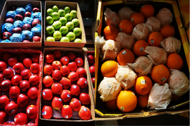 Izquierda: manzanas estadounidenses y neozelandesas. Derecha: naranjas estadounidenses.