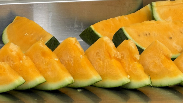 "Pero la verdadera diferencia está en el sabor. Esta variedad puede alcanzar entre 14 y 15 grados Brix, superando los 12 habituales en la sandía roja convencional. Es más dulce y crujiente, y también más aromática con matices tropicales: a mí me recuerda al mango o al melocotón, con un fondo cítrico muy refrescante parecido al maracuyá".