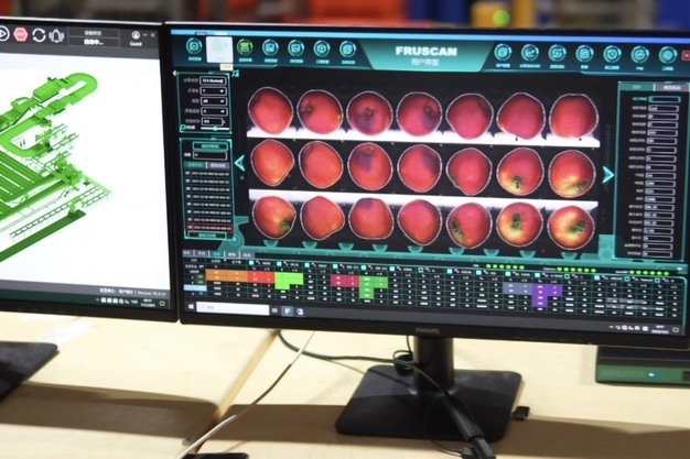 En el corazón del sistema se encuentra la tecnología de visión óptica S7.5 PRO de Reemoon, emparejada con una avanzada unidad interna de detección de calidad. Esta combinación permite a la máquina clasificar las manzanas por peso, tamaño, color y defectos externos, a la vez que comprueba cualidades internas como Brix, acidez, pardeamiento, moho, daños en la pulpa y otros problemas ocultos. El proceso es no destructivo, lo lo cual es ideal para operaciones de alta velocidad y gran volumen.