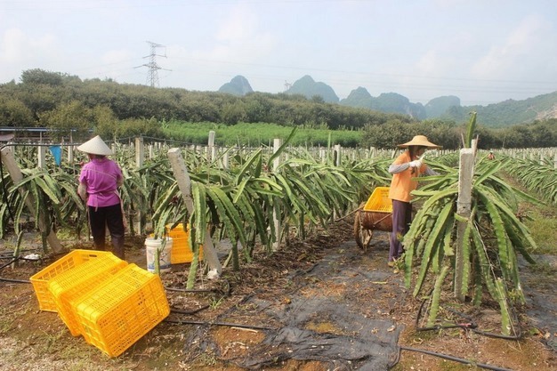 La empresa Longyisheng, de Nanning, Guangxi, tiene aproximadamente 53 hectáreas de superficie de cultivo, con una producción anual de unas 3.000 toneladas de pitahaya de pulpa roja. Según el Sr. Dong, gerente de la empresa, "en las principales zonas de producción, el cultivo con iluminación artificial suele comenzar alrededor del 20 de septiembre y el período de cosecha puede prolongarse hasta marzo del año siguiente. Sin embargo, debido a las bajas temperaturas, algunos campos han sufrido quemaduras en las hojas, que se han amarilleado, por lo que el crecimiento se ha visto obstaculizado parcialmente".