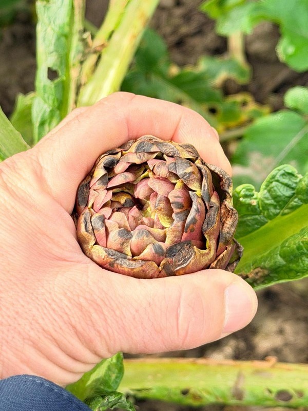 La productividad está cayendo a niveles críticos, una alcachofa por cada cuatro plantas, frente a la media habitual de 1,5 por planta. "Esta caída de los rendimientos, unida a las dificultades logísticas, da lugar a un desequilibrio económico en el que los costes de recolección superan por sí solos el valor global del producto. Sin embargo, la selección de la calidad sigue siendo estricta en las variedades Romanesco, Tema y Spinoso, excluyendo sistemáticamente los ejemplares que presentan signos de enfermedad o daños evidentes", señala Marco Lotta.