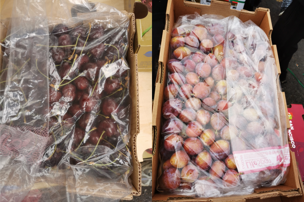 Izquierda: cerezas chilenas. Derecha: ciruelas chilenas.