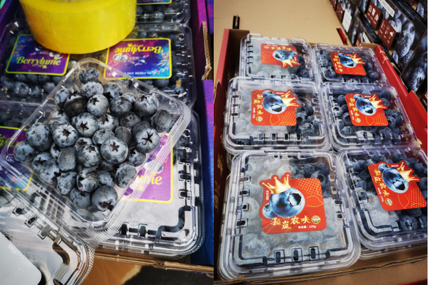 Arándanos de Sichuan (izquierda) y Guangdong (derecha).