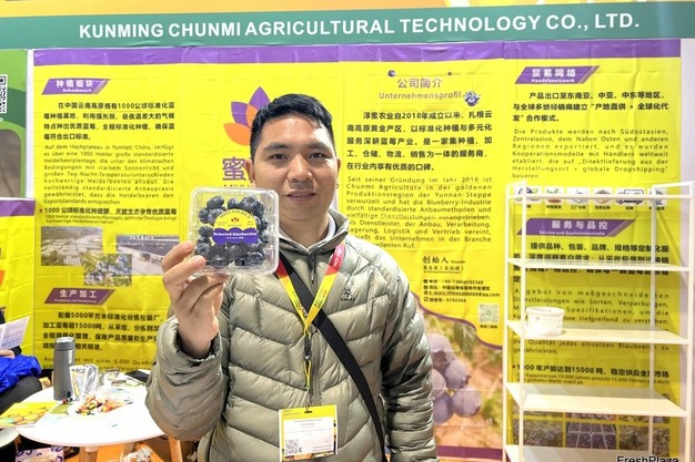 Asimismo, los arándanos de Yunnan han experimentado un rápido crecimiento en los últimos años, con un número creciente de exportadores presentando esta categoría emergente en ferias internacionales. Gracias a su cultivo en zonas de gran altitud, se caracterizan por su alta dulzura y ya cuentan con reconocimiento en el mercado doméstico. Este año varias empresas de arándanos de Yunnan participaron por primera vez en Fruit Logistica, despertando el interés de compradores internacionales en busca de nuevos orígenes de suministro.