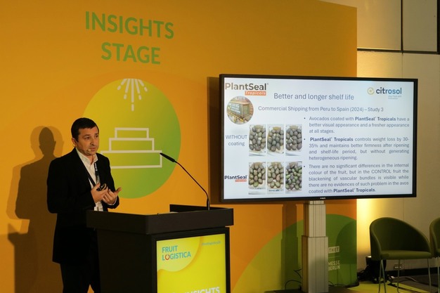 Durante su intervención, el Dr. Martín Mottura presentó los resultados de envíos industriales de aguacate desde Perú a España con PlantSeal® Tropicals. En estos ensayos se demostró: