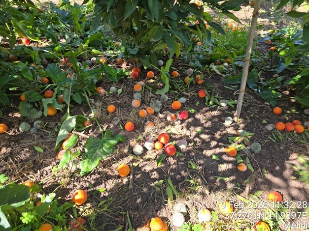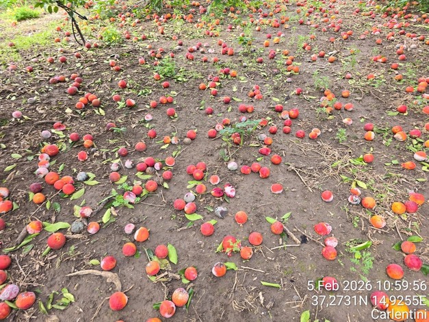 - lesiones mecánicas, dado que el viento empujó la fruta contra ramas y espinas, lo que provocó heridas que actúan como puerta de entrada de patógenos.