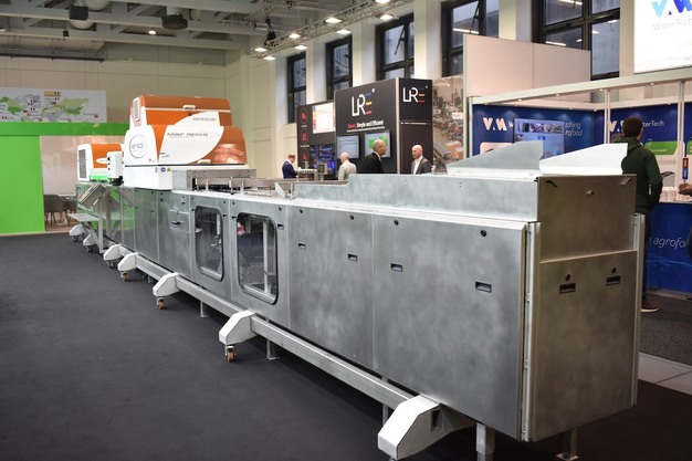 Sin embargo, Maf Roda no se ha contentado con responder solo a los retos de productividad y clasificación. El grupo también ha prestado especial atención a la ergonomía y la facilidad de uso de la máquina, sobre todo mediante un sistema de limpieza de vanguardia, diseñado específicamente para responder a las exigencias de transformación de un producto tan exigente como el dátil. "Trabajamos con un producto pegajoso, con un porcentaje de humedad muy elevado, que requiere una limpieza extremadamente eficaz", destaca Vincent Boulbès. La línea incluye fases de lavado mediante boquillas de agua, seguidas de secado mediante cuchillas de aire, para eliminar el polvo, la arena y los huesos. Construida íntegramente en acero inoxidable, la máquina es además robusta y tiene un mantenimiento sencillo.