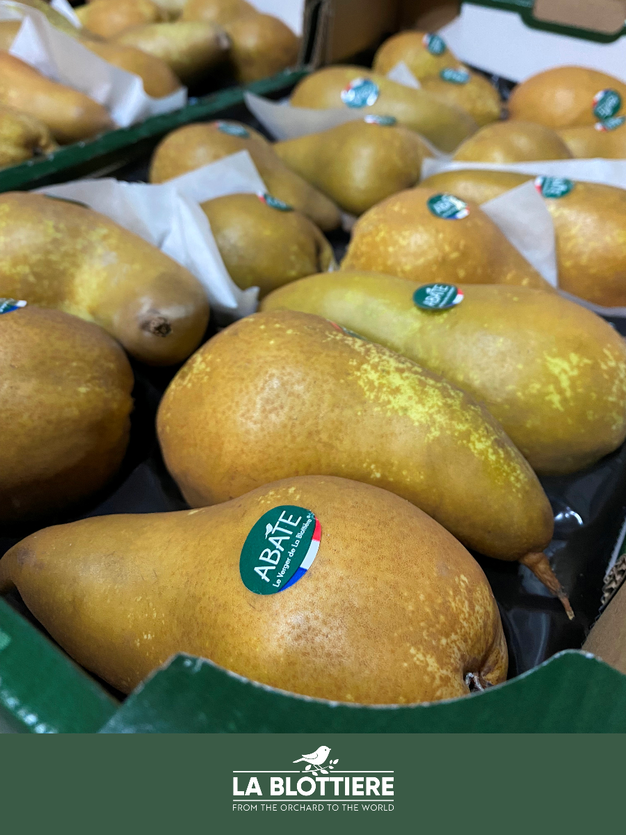 © La BlottièreEsta reintroducción responde directamente a la demanda del mercado. Abate es una de las variedades de pera más consumidas en Francia, pero actualmente se produce sobre todo en Italia. Para La Blottière, el restablecimiento de la producción nacional es a la vez una forma de enriquecer el patrimonio varietal francés y de ampliar la gama de productos ofrecidos a los clientes. "Como especialistas en peras, queríamos aprovechar nuestra experiencia para ofrecer un origen francés a una variedad que ahora se produce casi exclusivamente en Italia", afirma Quéraux, que añade que la promoción del origen francés entre los consumidores es una prioridad clave.
