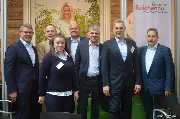 El personal de Reichenau-Gemüse eG en la Fruit Logistica de este año con el director general adjunto Christian Müller (3.º por la derecha) y el director general Johannes Bliestle (2.º por la derecha).