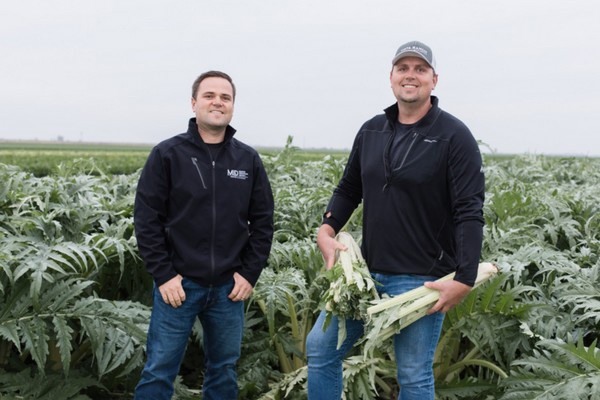 © J. Marchini FarmsJ. De izquierda a derecha: Marc Marchini y Nic Marchini en un campo de cardos.