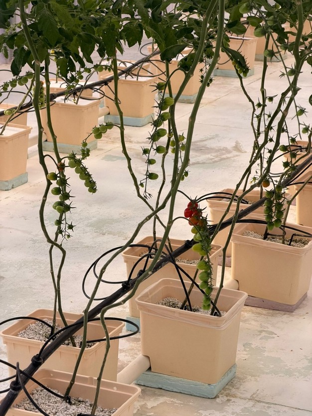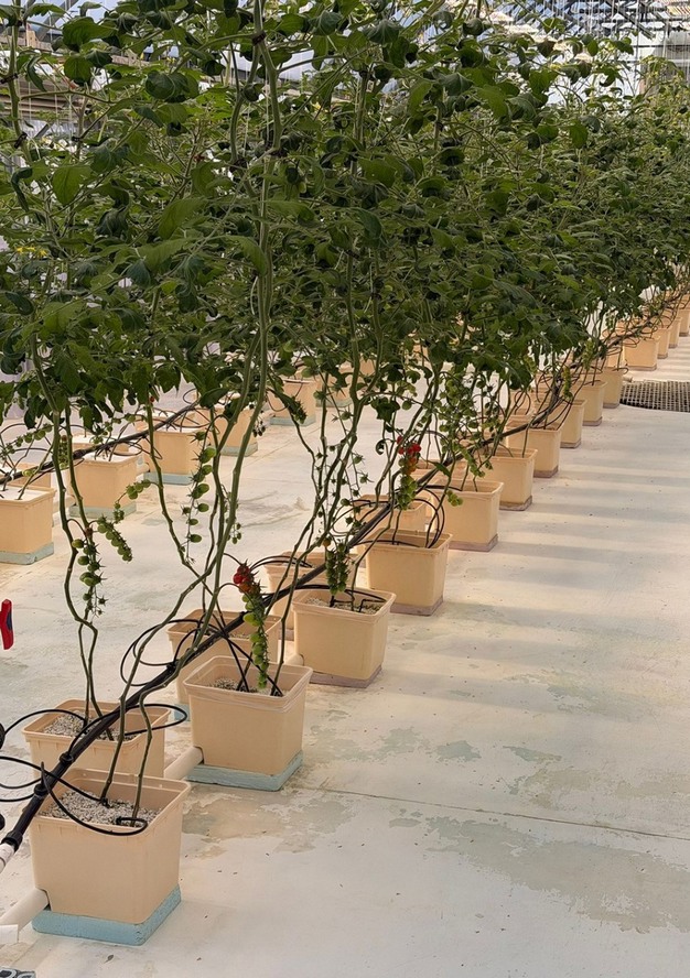 "El cultivo tiene lugar enteramente sin suelo y se apoya en la iluminación led, dada la falta de luz natural en los meses de invierno, y en el riego por goteo. Los recipientes de cultivo contienen una mezcla de tierra y roca, diseñada para proporcionar a las plantas el sustento correcto".
