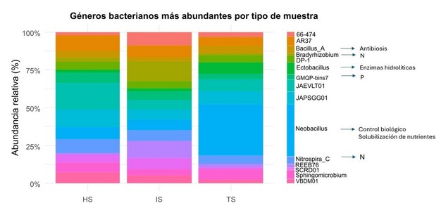 Uno de los ejes del trabajo es el desarrollo de "suelos supresivos", es decir, sistemas donde predominan poblaciones beneficiosas que limitan la proliferación de patógenos como Ralstonia o Fusarium. "Queremos demostrar que no es aplicar por aplicar microorganismos, sino entender cómo trabajan en sinergia y cómo evoluciona esa microbiota", explica.