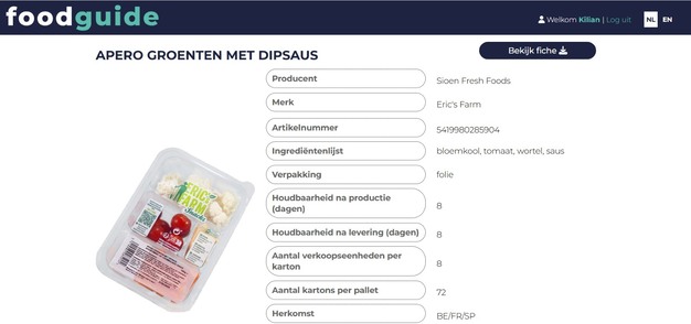 Foodguide está pensado como un punto de encuentro B2B para productores y encargados de compras del retail, del mercado mayorista y del sector restauración; una plataforma online de consulta. "Desarrollamos una web mediante la cual los encargados de compras pueden acceder a una base de datos de productos estructurada y fácil de consultar, permitiéndoles descubrir nuevos productos de una manera eficaz", explica Dominique. "La gran diferencia con una web clásica es que nosotros partimos de las necesidades de los encargados de compras, a quienes les interesa poder filtrar, comparar y evaluar rápidamente. Nuestra plataforma lo hace posible".