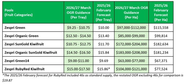 Zespri ha publicado su primera previsión para los productores de cara a la campaña 2026/27, ofreciendo una visión inicial de los retornos esperados al inicio de la nueva temporada. La comercializadora de kiwi presenta esta orientación indicativa en marzo, coincidiendo con la llegada de la fruta temprana a los mercados, y sitúa las previsiones en niveles similares a los de la campaña 2025.
