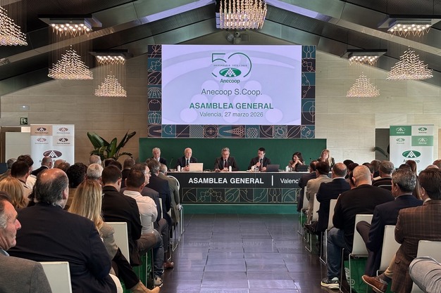 Inmersa en la celebración de su 50 Aniversario, la cooperativa agroalimentaria española Anecoop ha celebrado esta mañana su Asamblea General. Su presidente, Alejandro Monzón, y su director general, Joan Mir, han presentado la Memoria RSC de la entidad en la que se recogen los resultados del ejercicio 2024-2025 ante los más de 250 socios y profesionales del grupo que han asistido a esta convocatoria.
