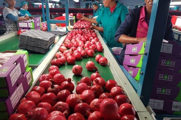 En las últimas dos semanas, Sapex ha enviado sesenta palés de granadas (unas 60 toneladas) para dos clientes desde O. R. Tambo International: el año pasado, durante toda la temporada, envió cuatro palés.
