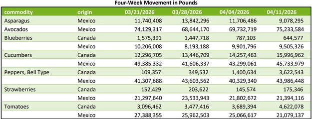 Se prevé que los envíos desde México a través de Nogales aumenten por motivos estacionales, y está previsto que el informe FOB se reanude a principios de mayo. Al mismo tiempo, está previsto que la producción nacional en el distrito de Walla Walla y el valle inferior del Yakima, en Washington, comience alrededor del 18 de abril, y se espera que los primeros informes sobre precios se publiquen poco después. Se prevé que la calidad sea, en general, buena a medida que avance la temporada en Estados Unidos.