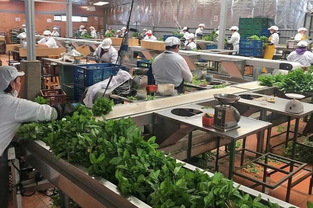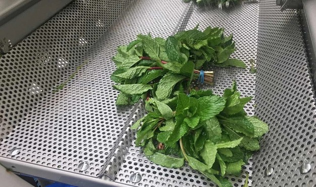 La empresa colombiana de hierbas La Corsaria limpia actualmente unos 100 kg de menta por hora y dispone de importantes reservas de capacidad. Para el procesamiento de los delicados manojos de menta fresca, la empresa ha apostado por una solución de Kronen: una lavadora Helical Gewa 3800V Eco, combinada con un sistema integrado de eliminación de insectos y de partículas finas junto con centrifugadoras de hortalizas y lechugas KS-100 Plus.