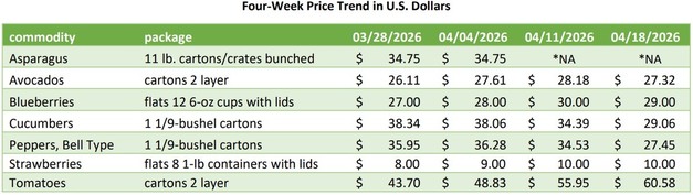 Se espera un ligero descenso de la oferta de México llegada a Texas, con un comercio activo y precios más bajos para los calibres más pequeños. En contraste, el movimiento desde el Distrito Sur de California está incrementándose, con comercio activo y precios altos para la mayoría de los calibres. En general, el mercado muestra tendencias de precios variadas dependiendo del tamaño y el origen.