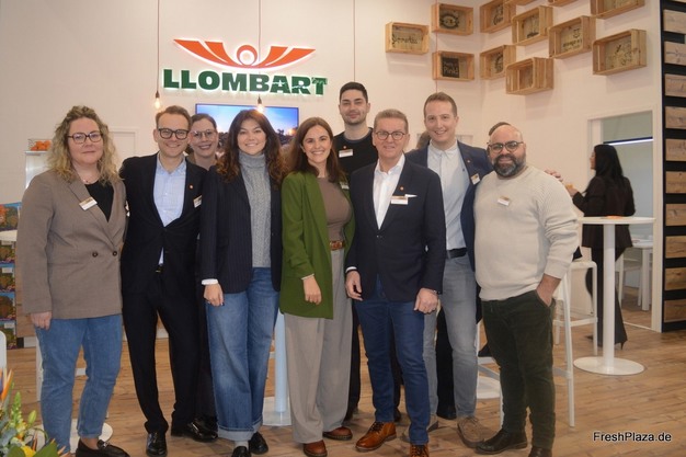 El personal del Grupo Llombart con Jörg Wilhelm (3.º por la derecha) en la Fruit Logistica de este año.