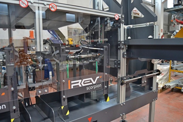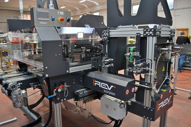 "Para responder a estas necesidades desarrollamos Scorpion, una rellenadora automática de cajas diseñada para integrarse perfectamente en las líneas modernas. La máquina es personalizable y configurable según las necesidades específicas de producción y puede llenar cajas de plástico o cartón del tipo IFCO, CPR, EPS, CHEP y similares, incluso con bordes laterales", explica Fabrizio Fiumana, presidente de REV Packaging Solutions.
