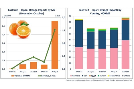 Las exportaciones de naranjas egipcias a Japón aumentan considerablemente en 2024/25