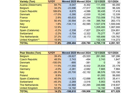 Las existencias de manzanas europeas suben un 11,6% interanual